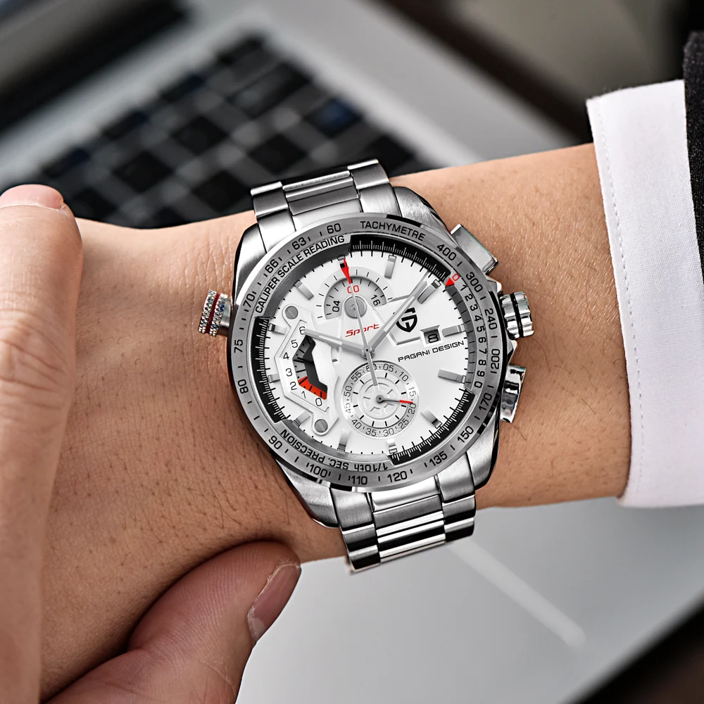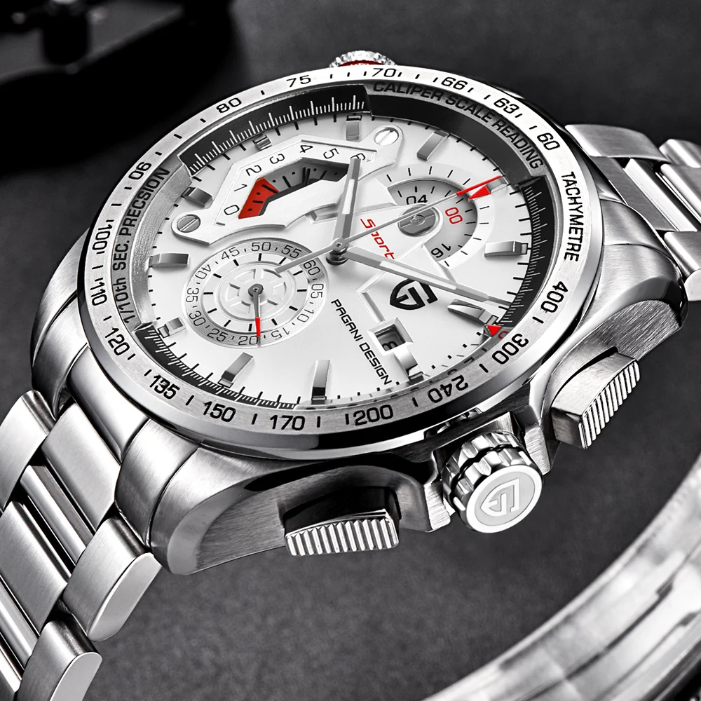 PAGANI DESIGN Chronograph Sport watches men luxury brand Quartz watch full stainless steel dive 30M